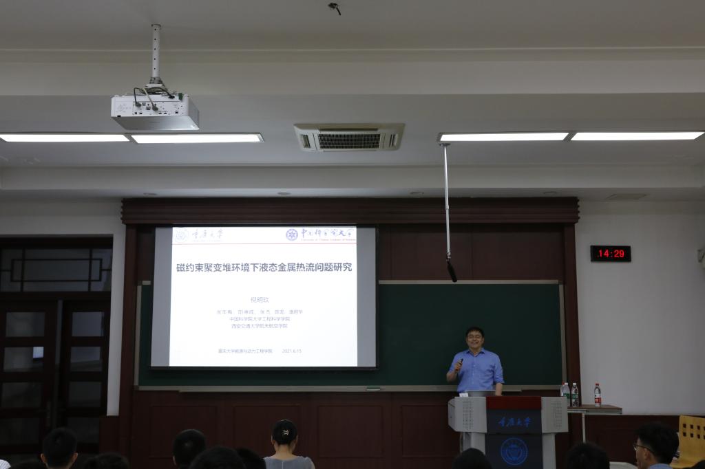 6月15日下午14点25分,应重庆大学能源与动力工程学院朱恂教授的邀请,中国科学院大学倪明玖教授来校作了题为“磁约束聚变堆环境下液态金属热流问题研究”的学术报告。