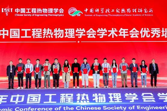 阙流林博士在多相流分会上做“非均匀阳极PTL对PEMWE水气分布和电解性能的影响”的口头报告,并获优秀论文奖;谭献武博士在工程传热学分会张贴了以“漆酶级联机械预处理小麦秸秆的酶水解特性及㶲分析”为题的墙报,并获优秀墙报奖。罗素韩、虞家琦、周霞、宋春苗等人均荣获优秀会议口头汇报奖。