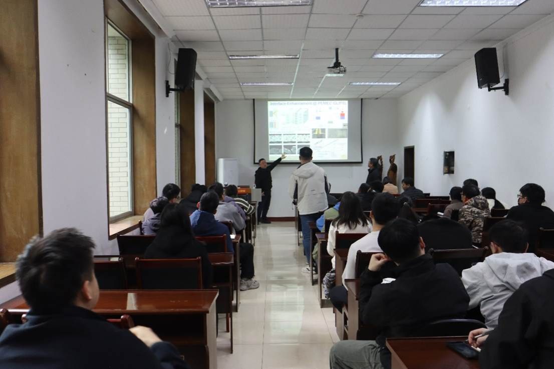 在互动交流环节,现场师生围绕质子交换膜电解水领域中氢气成本控制、离聚物中氧溶解度的测试方法、分布式制氢的潜力和挑战以及氢能安全等热点问题,与王云教授展开了热烈而深入的讨论。